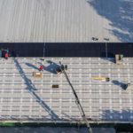 PV-panelen op gebogen, geprofileerde staalplaat dak van sporthal de Bloemerd