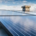 PV-panelen op gebogen, geprofileerde staalplaat dak van sporthal de Bloemerd