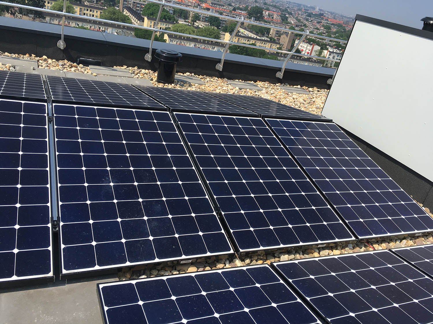 Zonnepanelen op het hoogbouw appartementencomplex Lumiere